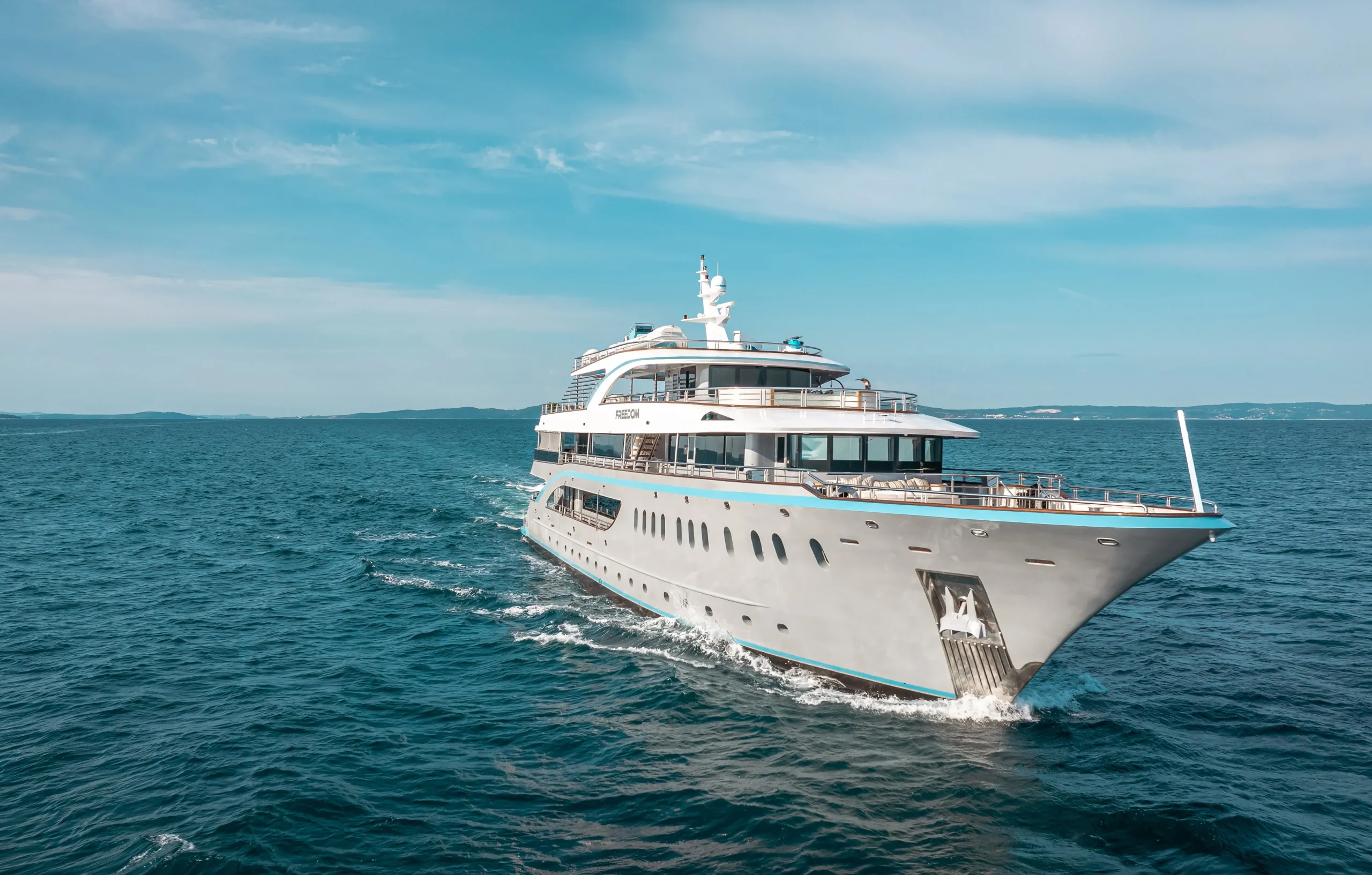 For example, one of our most popular options, the superyacht Freedom (48.2 meters/158.14 ft), can accommodate up to 24 guests. During the low season, Freedom is available for €110,000 per week + 13% VAT. This breaks down to a cost of around €4,588.88 per person for a week, which includes a crew of 12 and fuel for up to four hours of daily cruising. In the high season, the price rises to €140,000 + 13% VAT, translating to €5,833.33 per person for the week.