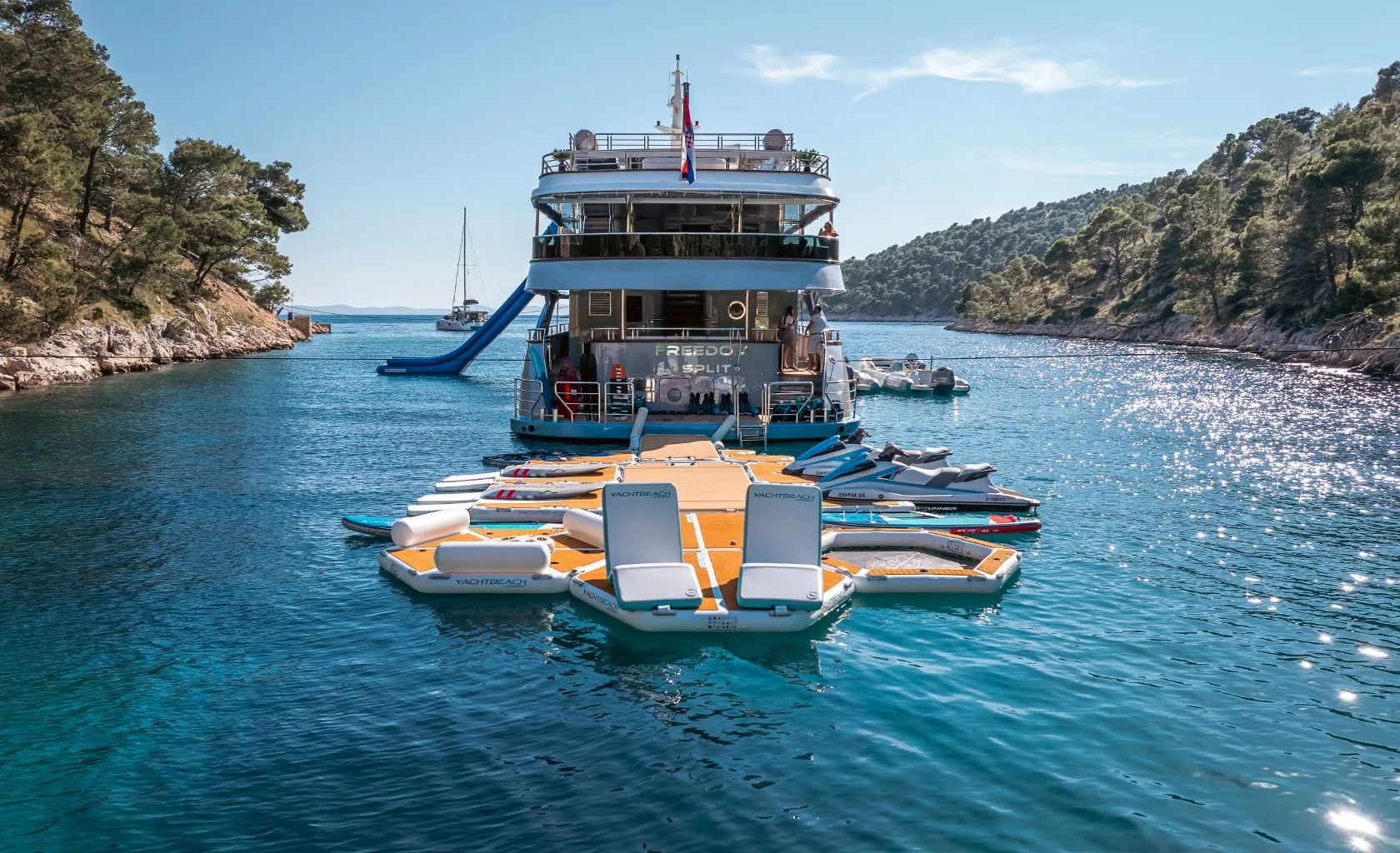 Freedom, a mini-cruiser, was the star attraction. Built to accommodate larger groups, Freedom offers room for more than 12 guests, making it the ideal choice for families, friends, or corporate gatherings seeking an unforgettable experience on the Adriatic Sea.