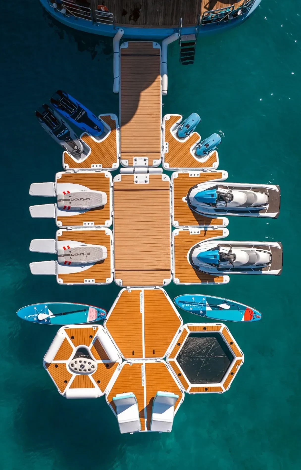 2 motos de agua, 2 SeaBobs, esquí acuático, wakeboard, paseo en donut, paseo en Ringo, 4 tablas de paddle surf, 2 tablas de paddle surf eléctricas, 2 E-Foils, kayak, tobogán acuático, plataformas de baño inflables