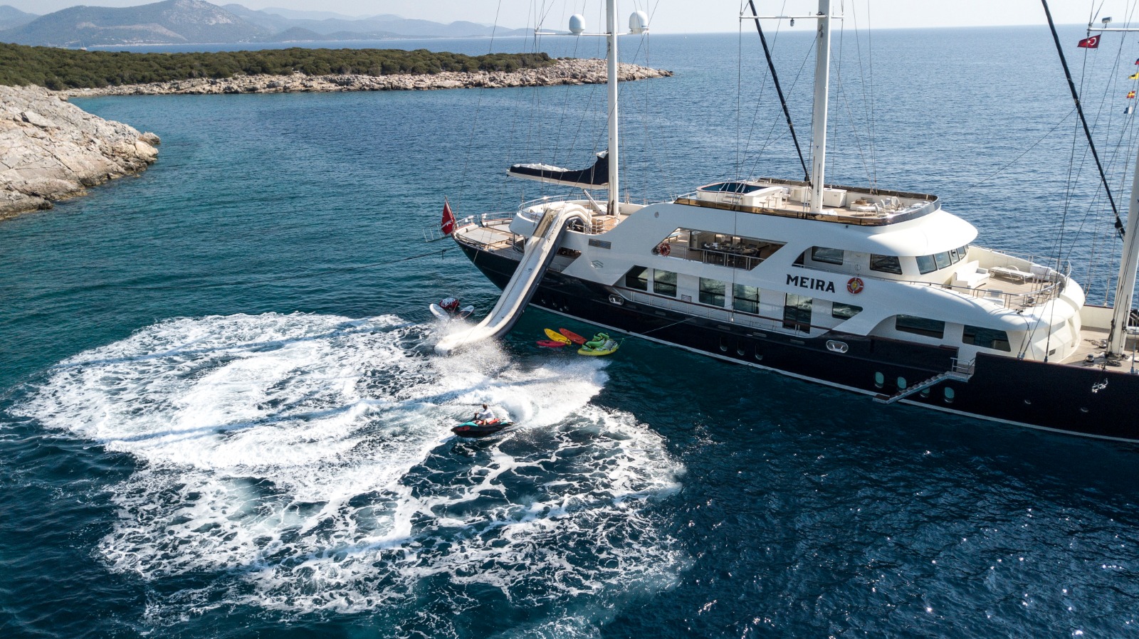 The maximum twelve guests aboard Meira will enjoy the attention of eleven crew, presided over by Captain Orhan, who has spent the greater part of his life at sea, everywhere from the Mediterranean to the Caribbean.