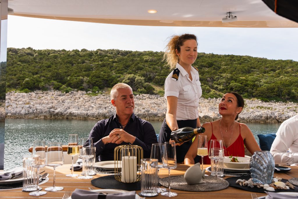 InquireOn day two, cruise east to Vis Island and anchor in its sheltered bay, surrounded by pine forests and turquoise waters. Explore the charming village of Vis with pastel houses, family-run "konobas", fresh bluefish, and local Plavac Mali wine. Swim from the deck, discover hidden coves by tender, and enjoy dinner under the stars as the sun sets behind Biševo.