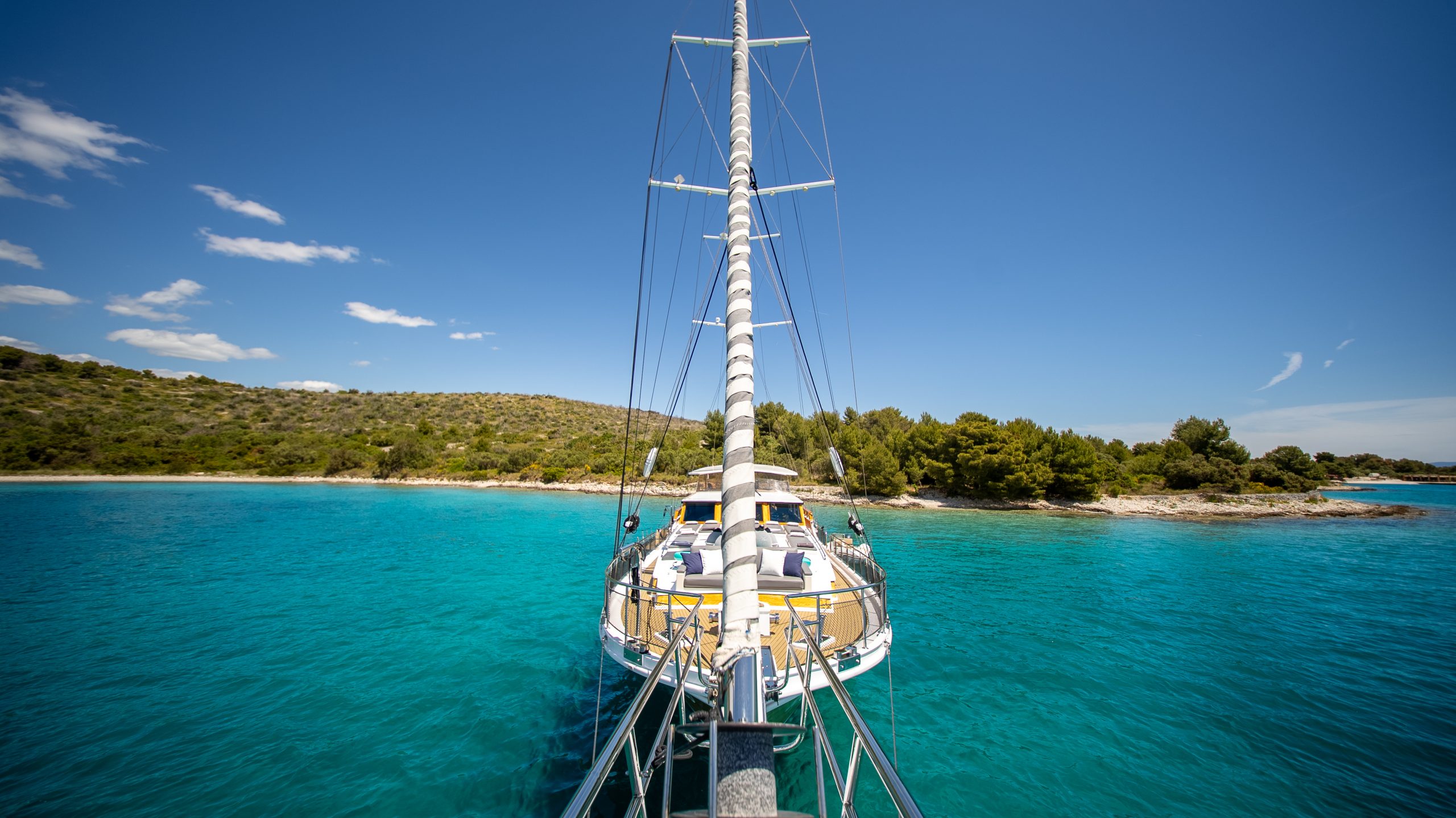 Anđeo features five air-conditioned ensuite cabins, each designed with minimalist elegance and maintained to perfection. The bright and uncluttered design ensures a feeling of calm, while the crew’s attention to detail guarantees restful nights and pure comfort throughout your journey.