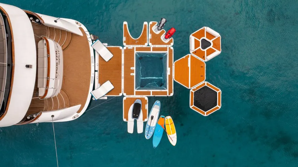 Step aboard Cristal and indulge in luxury. Enjoy sun-drenched decks, thrilling water toys, and exquisite dining. Spend your days in sunlit swims and water adventures, followed by elegant dinners under the stars and nights full of celebration.Watch short videos and discover the Cristal yacht experience.