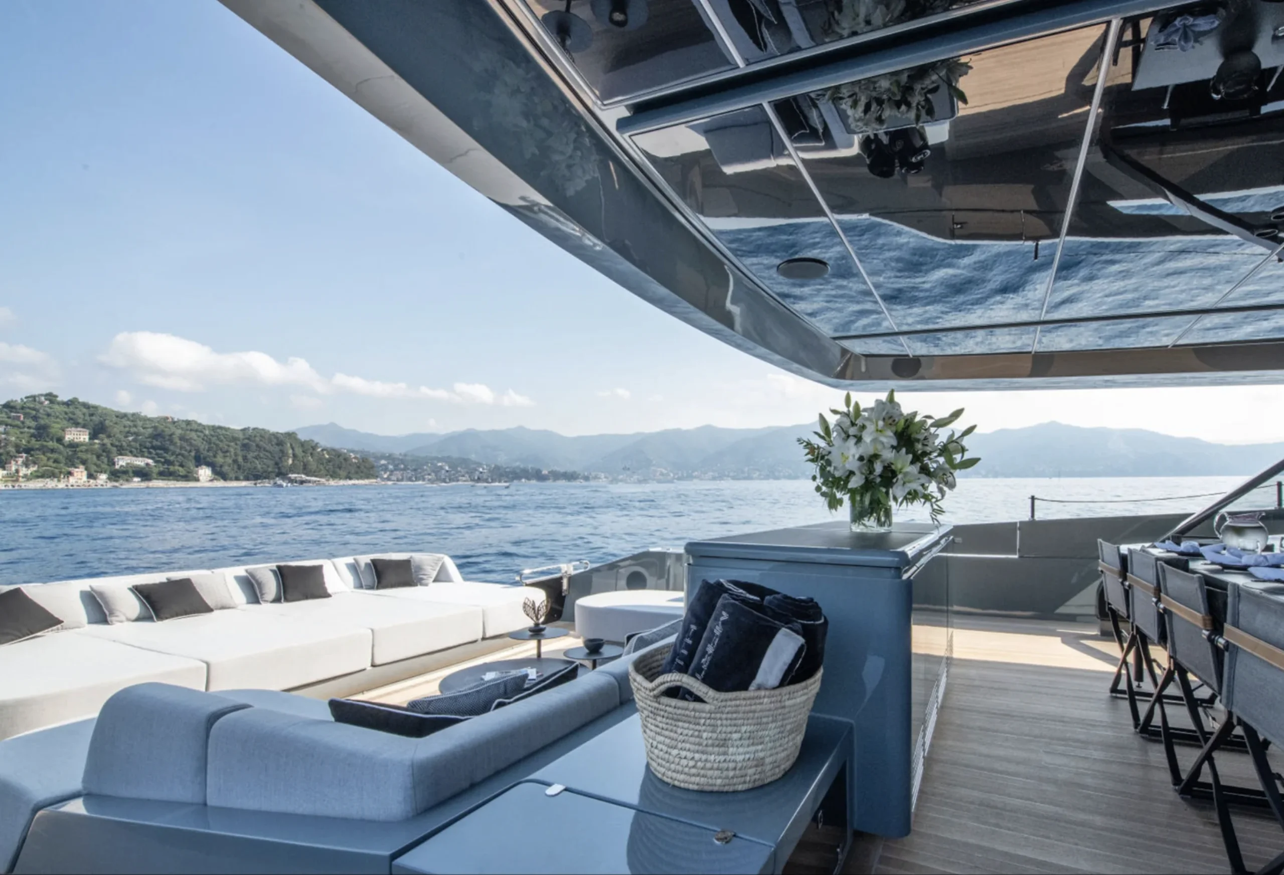 M/Y Martita combines elegance with environmental consciousness, offering a serene yet luxurious cruising experience. The flybridge provides ample space for relaxation and social gatherings, complete with sunbathing areas and a shaded Bimini top. The aft lounge area is ideal for intimate gatherings, equipped with plush seating and an alfresco dining setup for up to eight people, ensuring every moment onboard is both comfortable and memorable.