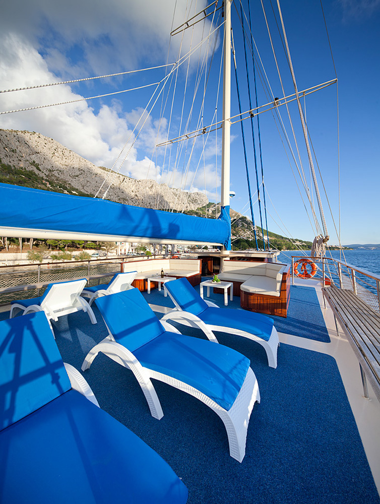 The crew of six, Captain, Chef, Hostess, Engineer, and deckhands, are on hand throughout to ensure your full enjoyment of your very own mini cruise ship, Tajna Mora.